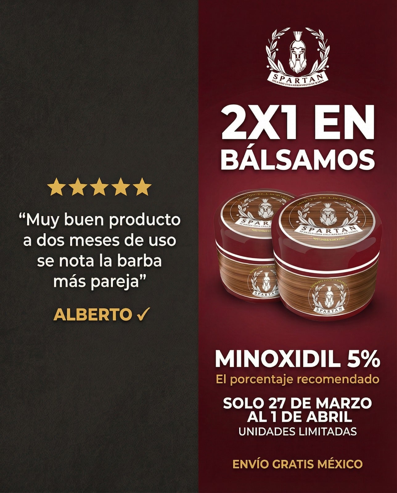 A) MÁS VENDIDO (ahorra $400) 2 Spartan Bálsamo Crecimiento de Barba y Bigote | Minoxidil 5% (Dosis Óptima) + Biotina + Bergamota | ENVÍO GRATIS